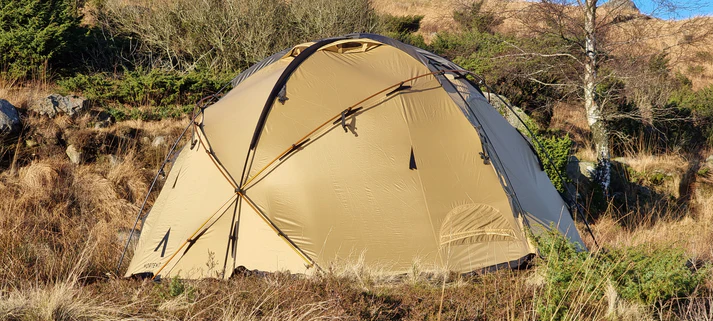 直径432cm、高さ216cmの大きな居住面積を備えながら、重さは13.5kgと軽量で、5つのポールは7つの異なるポイントで交差されており、より負荷のかかる部分にはダイニーマを使用するなど、悪天候や大雪にも耐えることが出来る高い耐久性を誇ります。