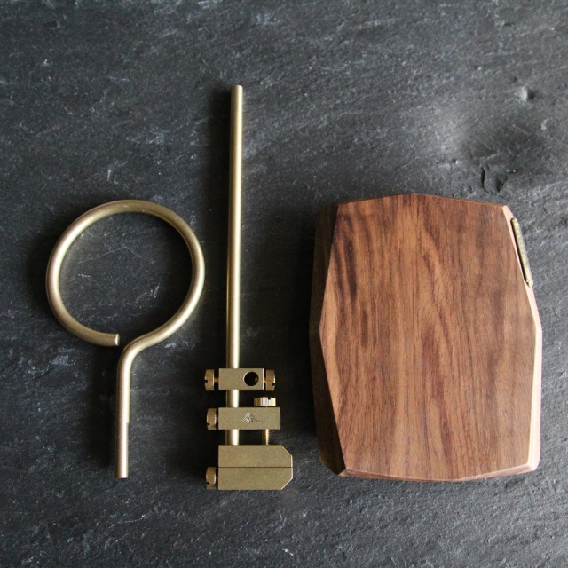 | 【MATERIAL:素材】 | 本体:真鍮 ブラスト仕上げ、 台座:ウォルナット材(ウレタンクリア塗装) 生産国:日本 |