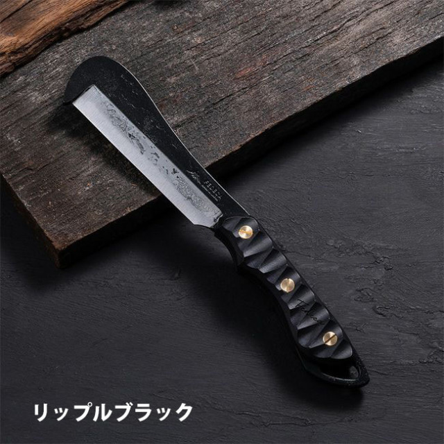 | 【MATERIAL:素材】 | 柄:積層強化木・積層材 (カルナバワックス仕上げ) 刃:鋼 ネジ:真鍮 付属品:専用レザーケース 生産国:日本 |