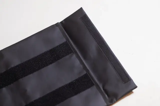 コンテナ・ギアボックス内の細かな小物ギアを分別するために使えるマルチギアポーチ。サイズは2種類で共に高さ47cmで横幅がSサイズ27cm/Mサイズ32cmです。収納するギアによってサイズをうまく使い分けてください。背面には上から下まで2本の綿ファスナーが付いていて収納するギアによってお好み位置で折り曲げ長さ調整が可能です。