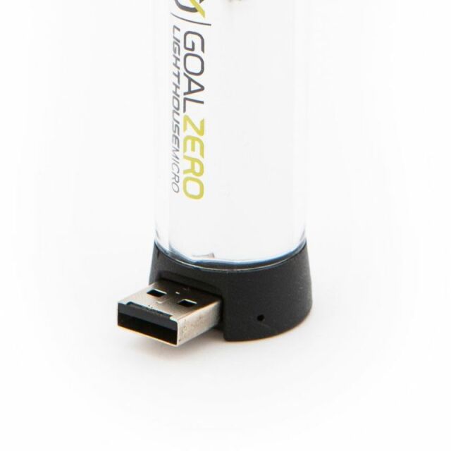 9.62Whリチウムイオン電池を内蔵。Nomad 7など別売のGoal Zero社製ソーラーパネルからの充電に対応するほか、本体底面に充電用のUSBコネクタを装備しており、ケーブルを接続することなく内蔵バッテリーを充電することが可能です。また、バッテリー残量が分かるLEDインジケータ搭載しています。吊り下げ用ハンガーも標準装備。