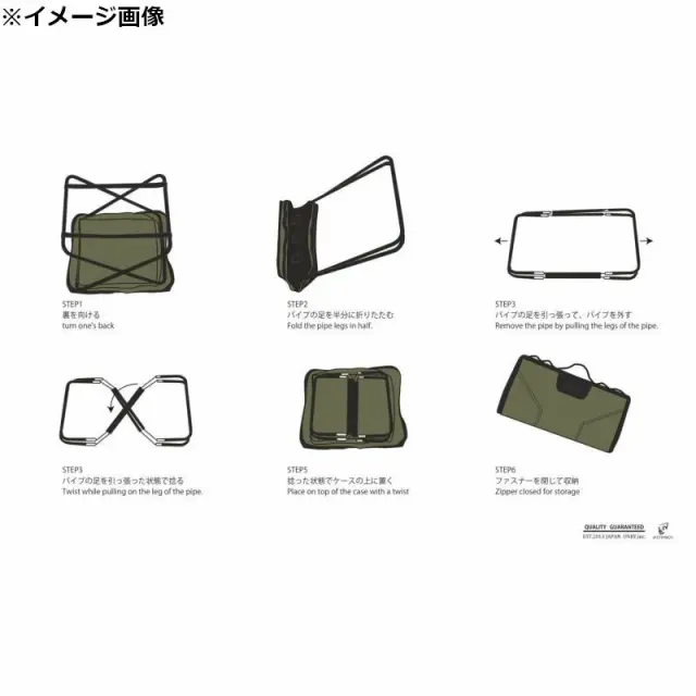 【ATTENTION】 | ●組み立て、折り畳みの際、手・指などを挟まないようご注意ください。 ●座面の上で立ち上がったり、踏み台として使用しないでしないでください。 ●瞬発的な衝撃または局部的な荷重により破損する場合がありますので、急激な荷重や偏った荷重は避けてください。 ●凹凸や段差のある場所、軟弱な地面では使用しないでください。 ●室内で使用する際は、床が滑りやすいので、転倒などしないように十分にご注意ください。 ●生地の劣化や色褪せの原因になりますので、長時間直射日光に当たる場所での使用は避け、屋外に放置しないでください。 ●摩擦により色移りする場合があります。 ●汚れた場合は布で水拭きするか、中性洗剤等で拭き取ってください。シンナー等は使用しないでください。 ●濡れたまま保管しますと色落ちおよび色移り、生地の劣化を起こす場合があります。 |